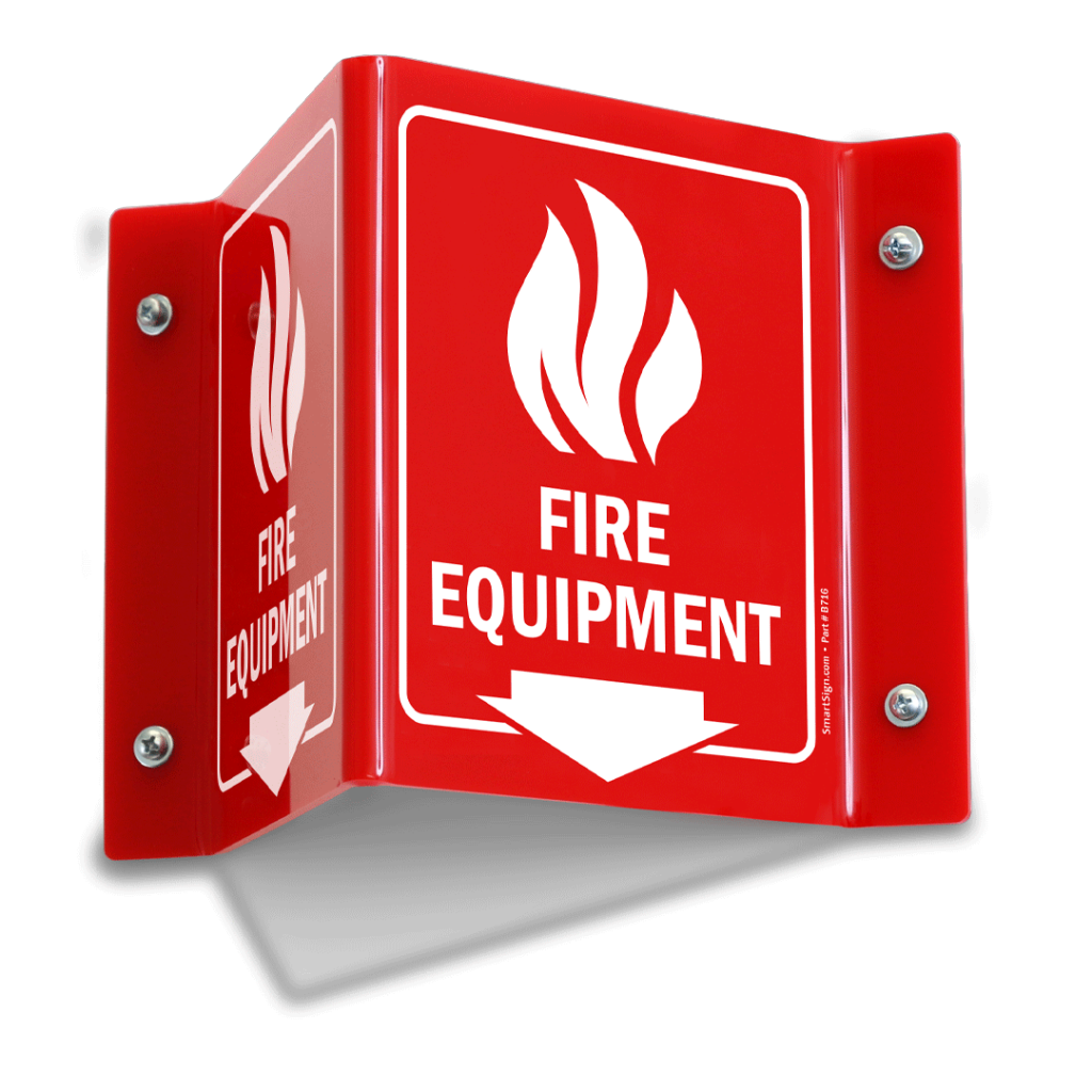 High-visibility safety signages crafted for clear communication, guiding people toward exits, equipment, and emergency routes during fire incidents.